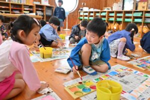 ひらがなや数字を遊びの中に取り入れ、言葉や数に興味・関心を持てるような取り組みをおこなっています。 ≪令和7年度 ねらい≫ 〇ひらがなに興味関心を持ち、文字を読んだり書いてみようとする 〇数を取り入れた遊びを通して、数の愛念を理解し興味関心を広げようとする 〇英語の正しい発音に触れ、興味をもつ